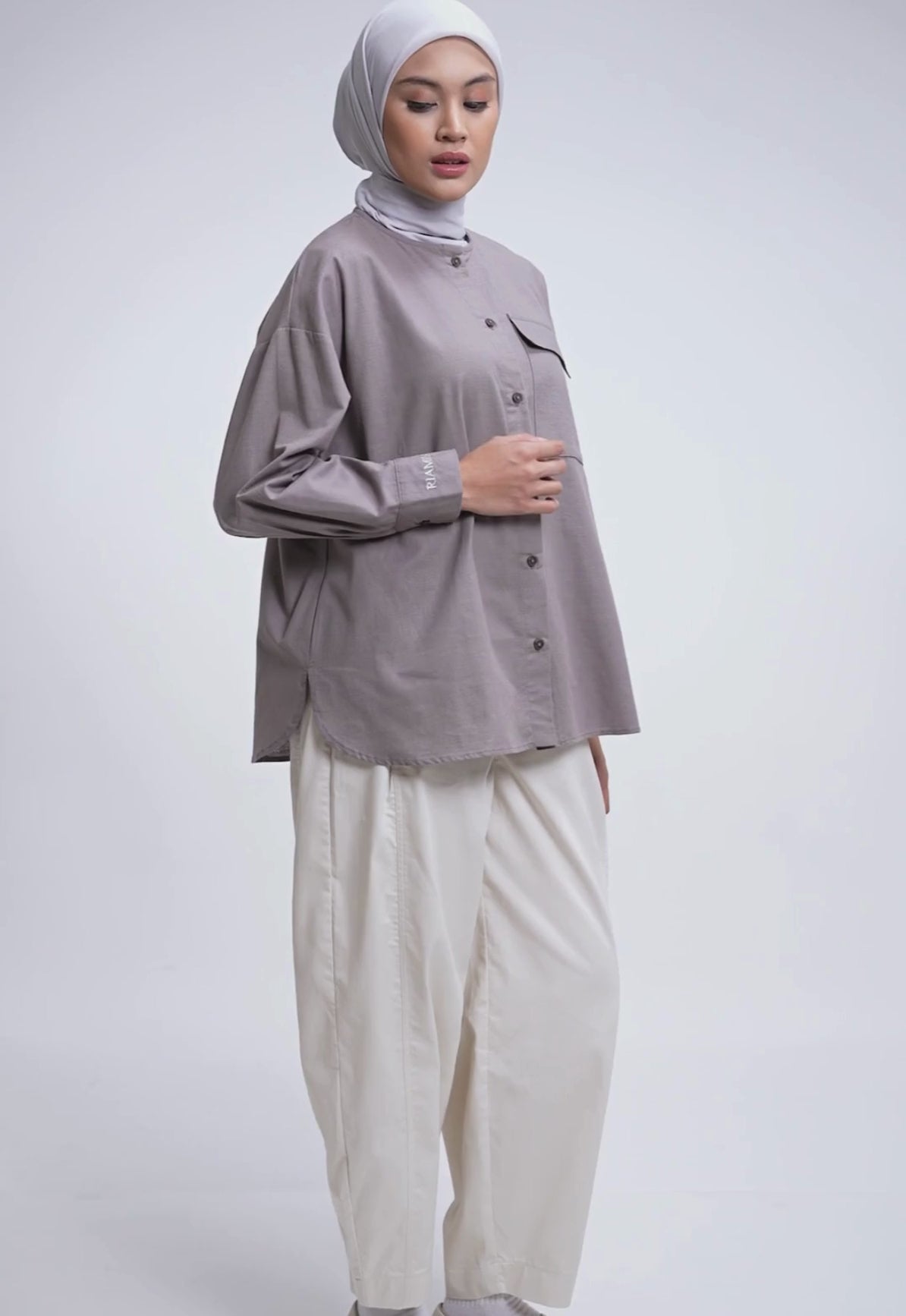 The Ariell Top from RiaMiranda’s Daily Basic Collection features premium Cairo cotton for a soft, breathable feel. Available in versatile brownie and dark grey shades, it offers sizes S-M and L-XL to ensure a comfortable fit. The top is distinguished by an embossed RiaMiranda logogram and a functional front button, combining subtle branding with practical design. Perfect for everyday wear, it balances style and comfort effortlessly.
