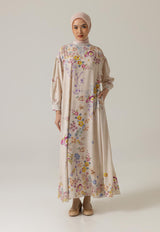 The EMMA DRESS by RiaMiranda Seruna Raya is part of their exclusive collection. Made with fine sateen doff material, this cream-colored dress features a unique opening detail on the back side and elegant puffed sleeves. Available in two sizes: S-M and L-XL. Perfect for a chic and sophisticated look.