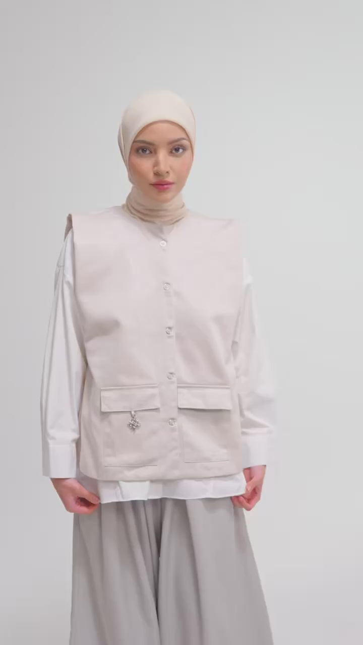 The IZARA VEST from RiaMiranda's Winter Series combines timeless style with practical functionality. Crafted from durable cotton bold twill, this versatile piece features refined embossed detailing and functional pockets for everyday convenience. Available in two sophisticated colorways—Bleach Sand and Pale Blue—the vest adapts seamlessly to any seasonal wardrobe. Offered in sizes S through XL, it delivers a structured silhouette that works equally well layered over basics or worn as a standalone statement piece.