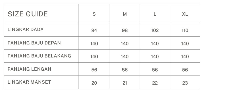 - Mohon melakukan pengukuran sesuai size chart yang tertera sebelum menentukan size yang diinginkan.