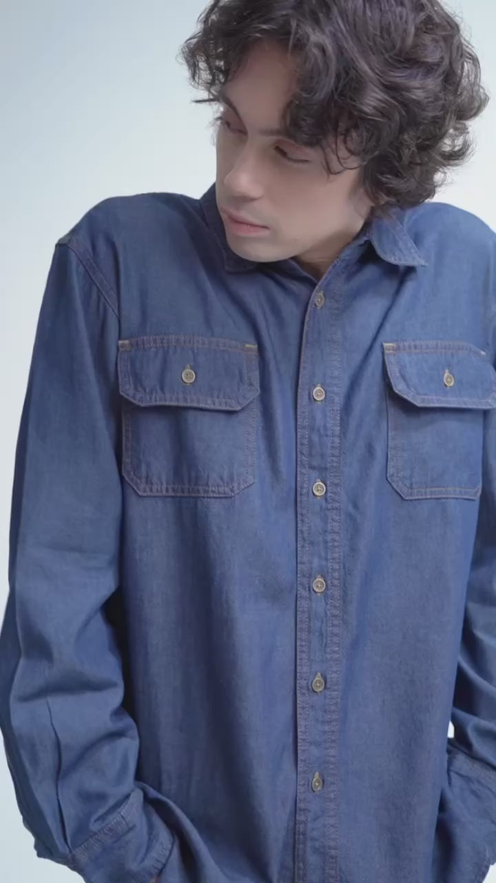 The Lyon Shirt from RiaMiranda Denim Collection is crafted from Ever Denim, ensuring lasting comfort and resilience. This navy blue long-sleeve shirt features a buttoned-up front and two functional pockets, offering both style and practicality. Available in sizes S to XL, it delivers a sophisticated denim option suitable for various occasions.